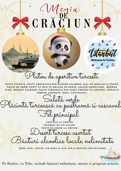 • 🚢 Croazieră pe Bosfor – Bucură-te de o plimbare magică pe strâmtoarea care desparte Europa de Asia! Vei admira palate spectaculoase, fortărețe impunătoare și Cornul de Aur, în timp ce te lași purtat de farmecul Istanbulului văzut de pe apă.